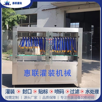 青州市惠聯灌裝機械有限公司是一家集生產研發、銷售、服務于一體的液體灌裝成套設備生產企業,可根據廠家要求設計合理液體灌裝生產線,為用戶提供技術咨詢、設計工藝、場區平面布置、工藝改造、設備安裝調試等完善服務。 公司生產制造各種類型液體灌裝機、過濾機,水處理設備及液體灌裝成套設備。主要產品有:白酒、葡萄酒、黃酒等酒水灌裝機、食用油、機油、潤滑油等油類灌裝機、醬油醋、老抽、生抽等調味品灌裝機、防凍液、玻璃水灌裝機、酒精、84消毒液灌裝機、車用尿素灌裝機、口服液灌裝機、洗滌劑灌裝機等多種液體、膏體灌裝設備,全自動/半自動灌裝機型號多,規格全,洗瓶機、瓶子封口機、打塞機、熱縮機、瓶子烘干機、貼標機、噴碼機、輸送線、裝箱機、水處理設備等全套生產線相關配套設備齊全,自產自銷,一站式購齊,售后無憂。